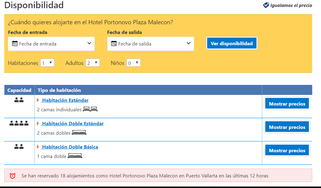 Algo que hace Booking.com es que hace todo lo posible por convencer a los usuarios de reservar cierto hotel porque quedan pocas plazas, hay mucha gente viendo esa misma oferta o quedan apenas unos minutos para que caduque ese precio.